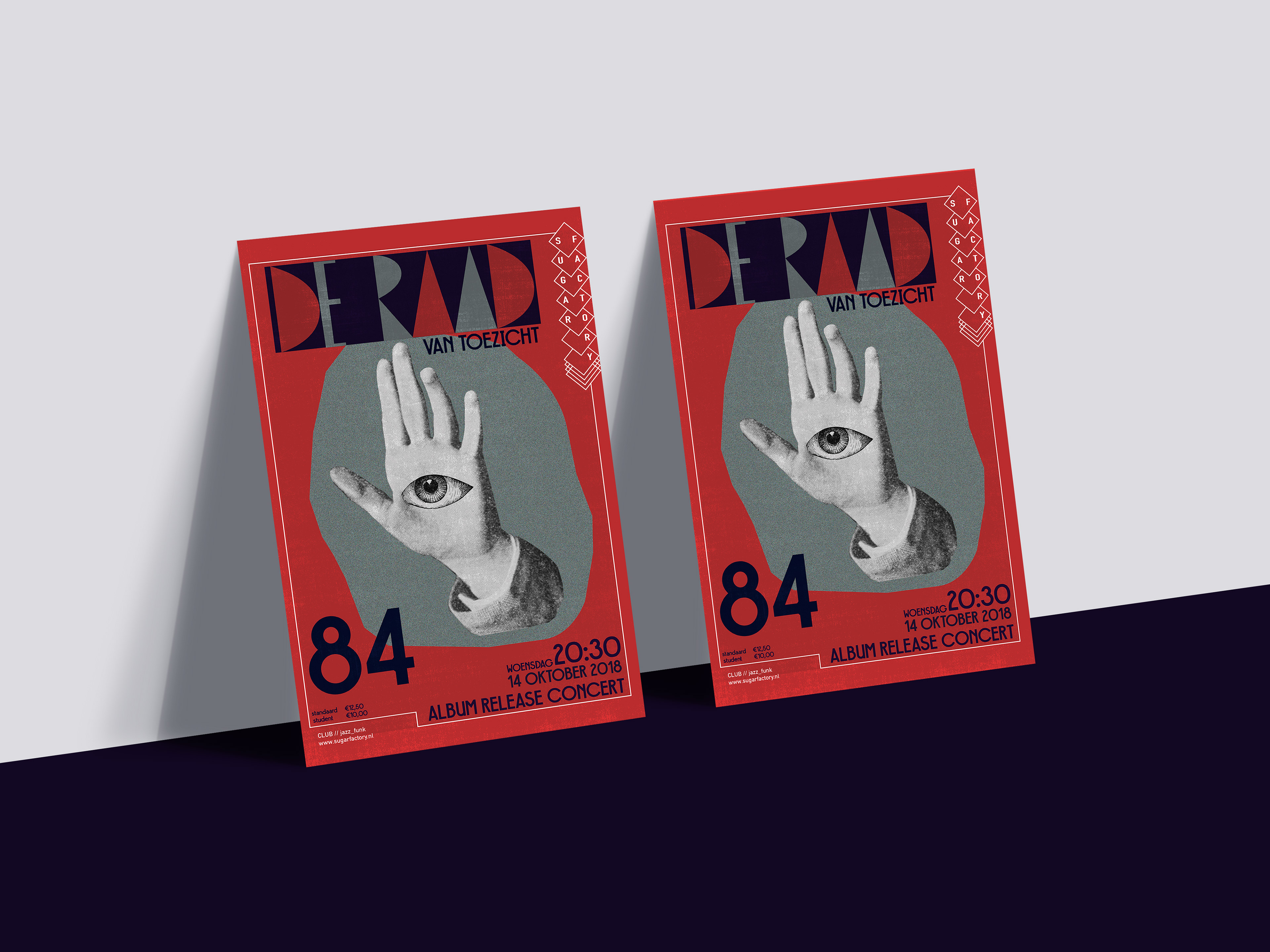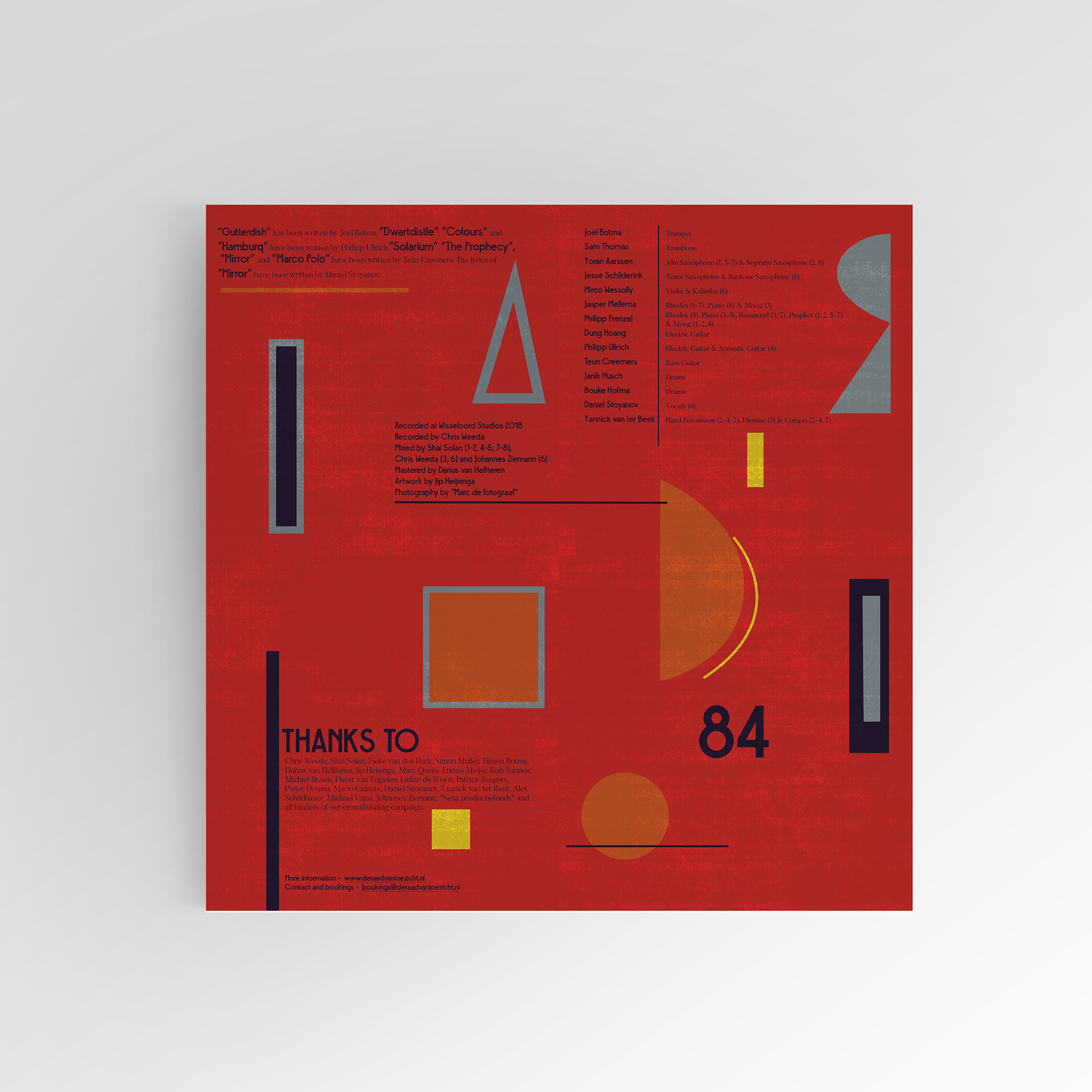 Album cover design for the new album 84' of de Raad van Toezicht. Jazz funk big band. Font and style inspired by Bauhaus.